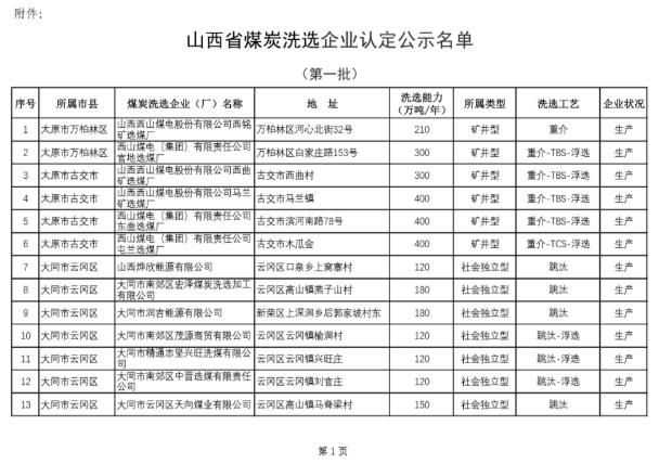 第一批山西煤炭洗選企業(yè)認定名單公布