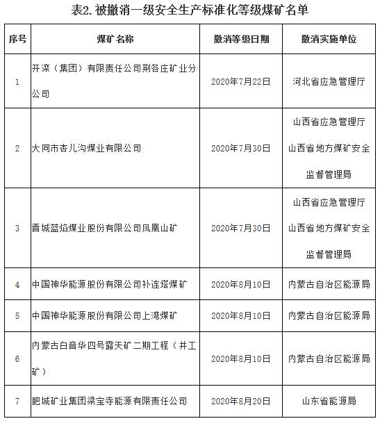 開(kāi)灤(集團(tuán))有限責(zé)任公司荊各莊礦業(yè)分公司等7處煤礦一級(jí)安全生產(chǎn)標(biāo)準(zhǔn)化等級(jí)被撤消,詳見(jiàn)附表2。
