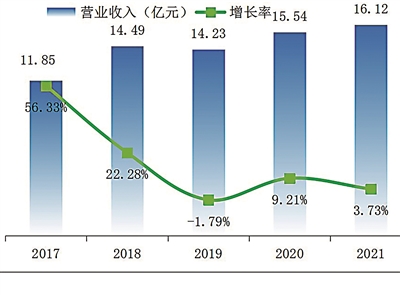 圖1 2017-2021年“500強(qiáng)”總營(yíng)業(yè)收入(萬億元)
