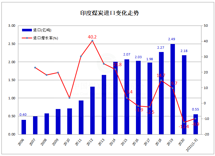 2021年一季度印度煤炭進口同比下降約10%